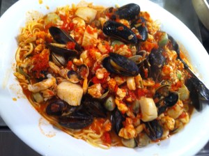 Tonight we went to my parents for a family dinner and the Jewtalians enjoyed a delicious Italian meal; zuppa di pesce, of sorts.
