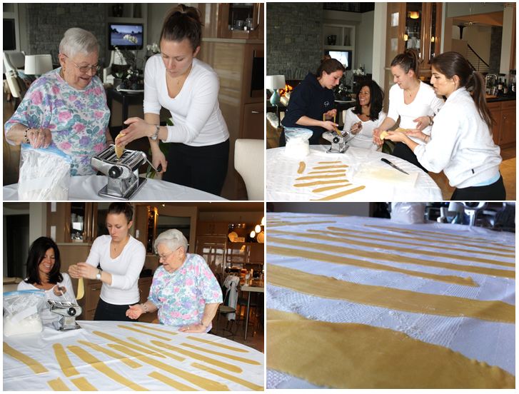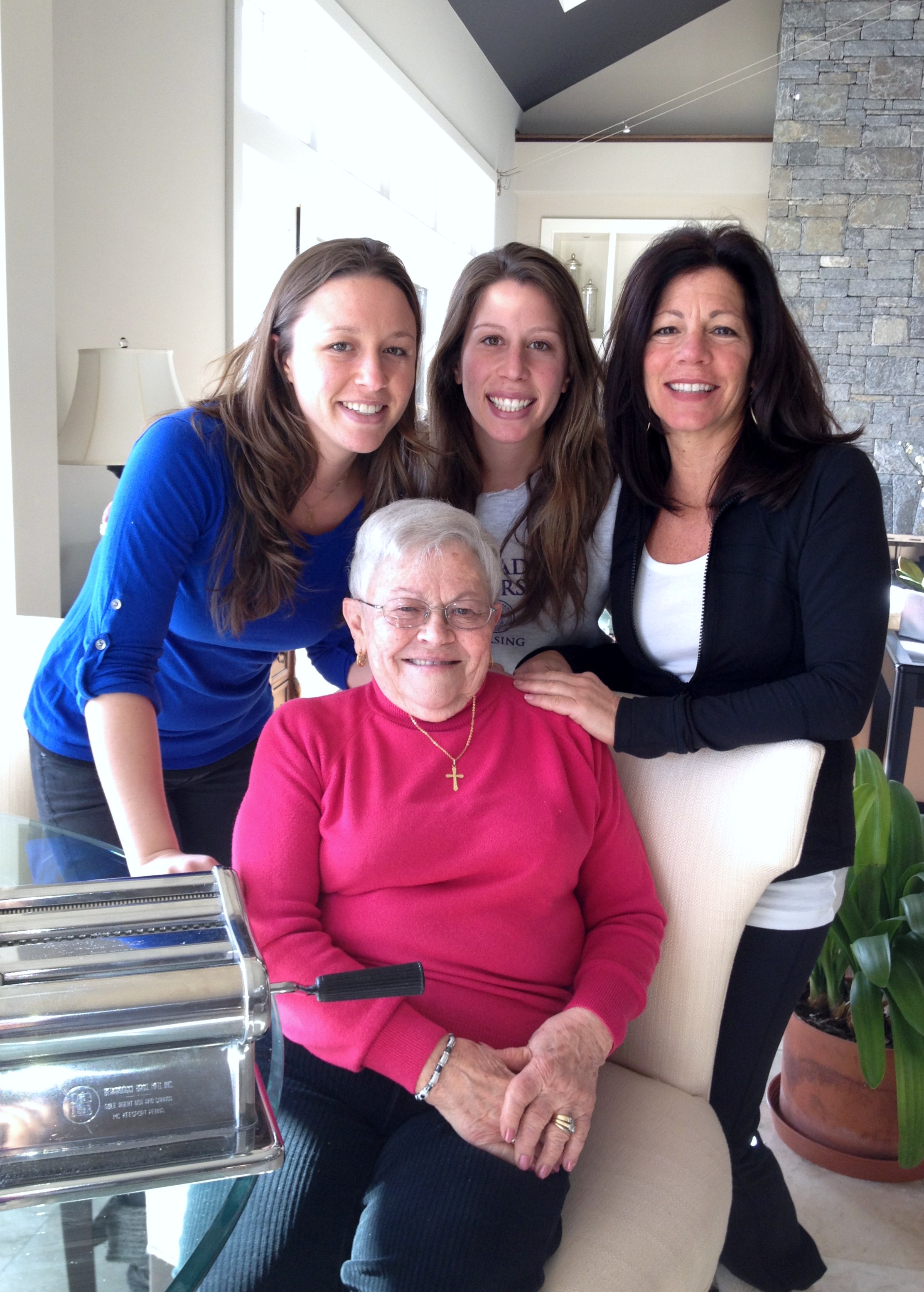 I have always wanted to make homemade pasta. Having lived in Italy and knowing what fresh pasta tastes like, I know it’s worth whatever effort it takes to make it. Growing up I heard stories of how my great-grandmother, Filomena Bonini, made homemade pasta weekly, rolled it by hand with a long broom stick, and laid it to dry on a sheet on her bed. So, I thought it would be fun to carry on tradition and make homemade pasta with my mom, grandma, and sister even though we substituted the broom stick with a pasta machine.