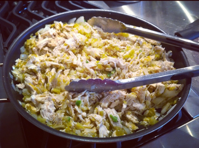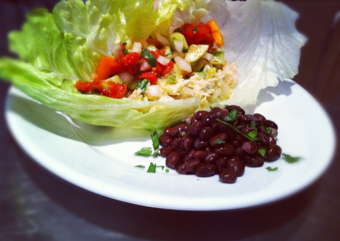 My father is on a new diet so last night’s dinner was all about taking a dish I love (see recipe here: chicken enchiladas verde) and making it calorie friendly. My brother also happened to be home and he is on the opposite end of the diet spectrum. With this dinner we managed to make everyone happy. My father, who is on an 1800 calorie a day diet, consumed 424 calories and the rest of us consumed 614, the main difference being the cheese but he also only had one tortilla (with no cheese) and used lettuce for the rest whereas I had two tortillas. The lettuce wraps are a great way to enjoy a wrap with less calories and an added crunch. We did, however, find a whole wheat wrap with only 45 calories which is a great find! Overall this was a healthy meal with lots of fresh veggies that was delicious and offers you a lot of options when cooking for a diverse group of people.