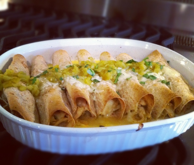 Above is a healthy option with the same tasty chicken used in the baked enchiladas below.