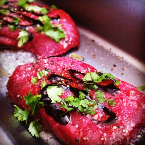 Marinate your steak (for as long as you have but make sure you bring steak to room temperature) in a drizzle of oil, salt, pepper and fresh cilantro.