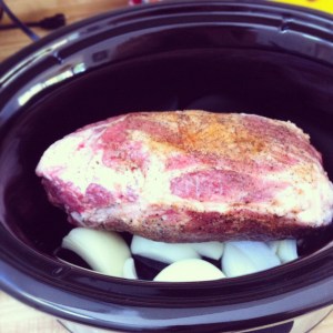 I am not from the south, I don’t have a smoker on the back deck of my 3rd story condo, and I can’t say I’ve ever bought a pork butt before. So, I’m not going to try to pretend like this is the best pulled pork anyone from the south (or New England for that matter) will ever make or eat. However, this city girl did get a crock pot for my birthday last week and I learned about this fantastic product called “Liquid Smoke”, and I will say the two together produced a respectable pulled pork sandwich that was tender and juicy.