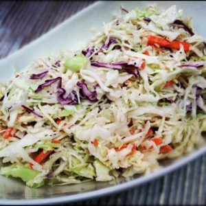 - Serve plain, over beans and rice or like we did, on a fresh roll topped with delicious cole slaw, a side of black beans and chips with guacamole on the side.