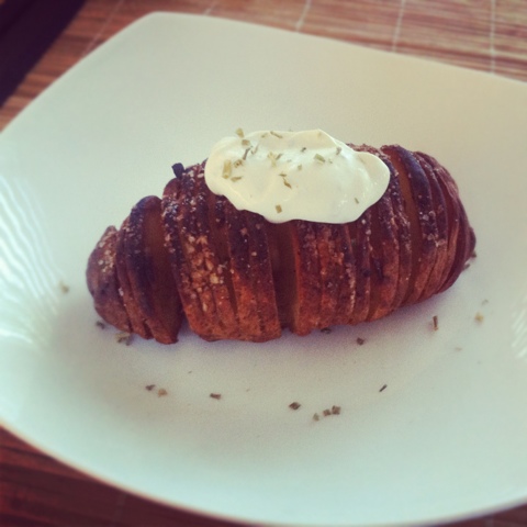 Sometimes a plain old baked potato is good, but that’s what it is, plain and old… I was inspired by a photo on pinterest to put a fun twist on the classic side dish. Easy, inexpensive and satisfying!