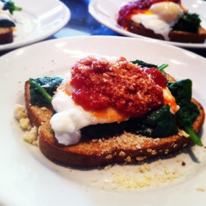 -Add spinach to the same water and let cook 1-2 minutes. Strain the spinach and then place on top of toast.