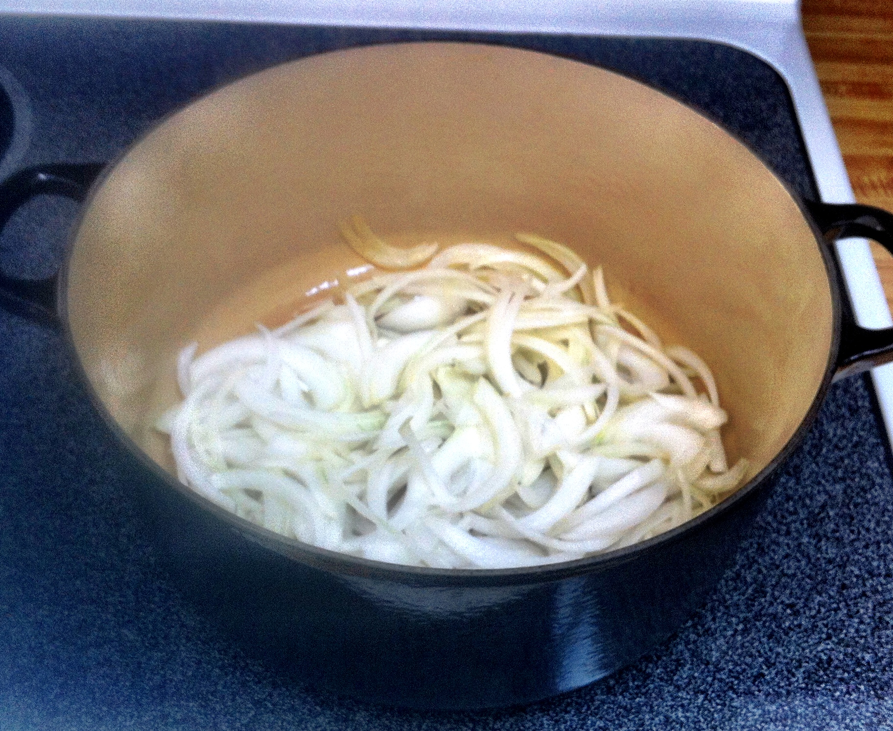 - Slice your onions very thin and put them in a pan with oil. Cook on medium to high for 30 or so minutes. The longer they cook, the sweeter they will get!