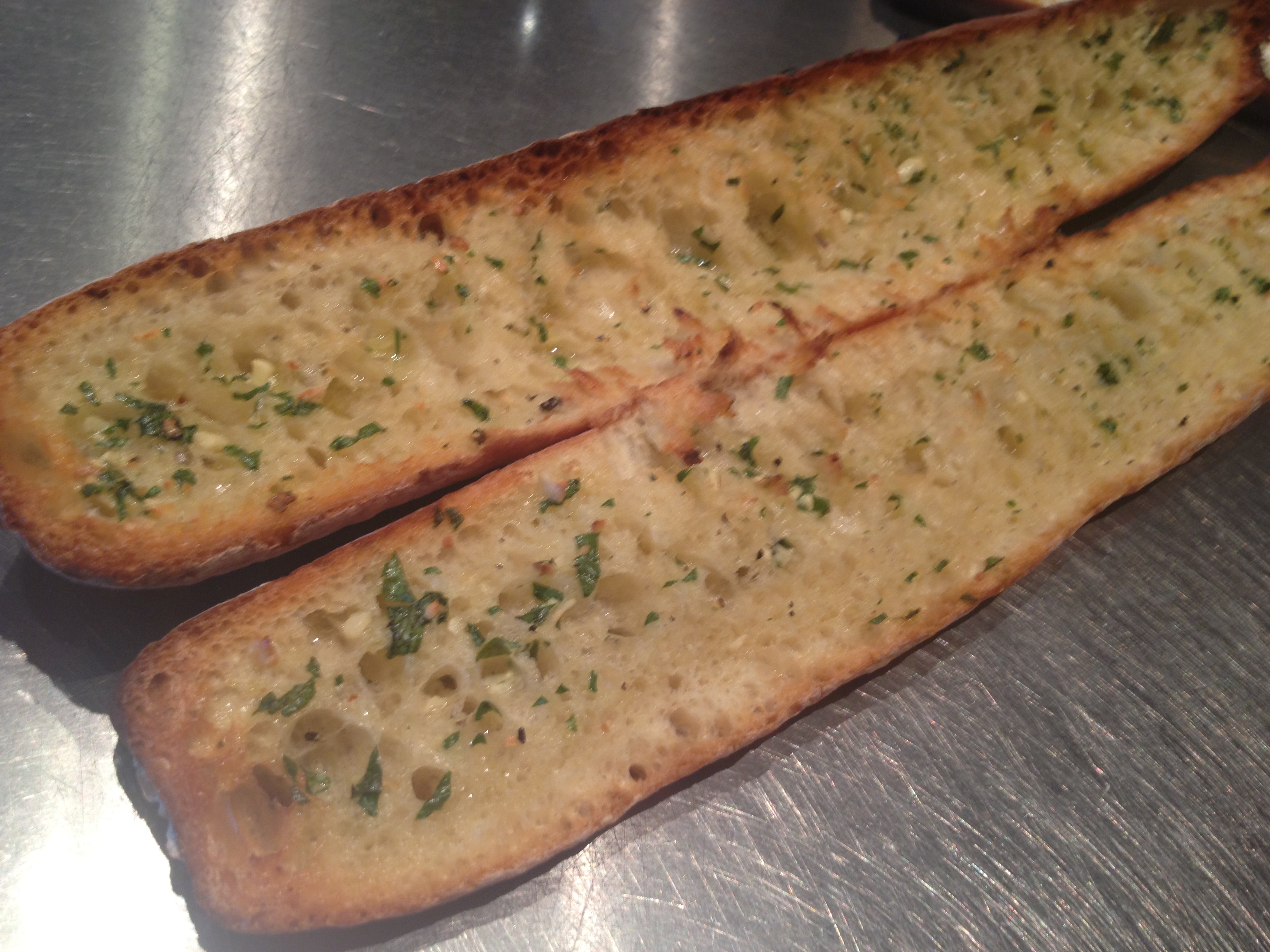 Spread on the garlic bread, add salt and pepper, and bake in a 350 degree oven for 10 minutes or until golden brown. An optional treat: add some fresh mozzarella!