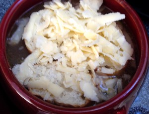 - Grated Gruyère cheese, enough to cover the top of your bowl