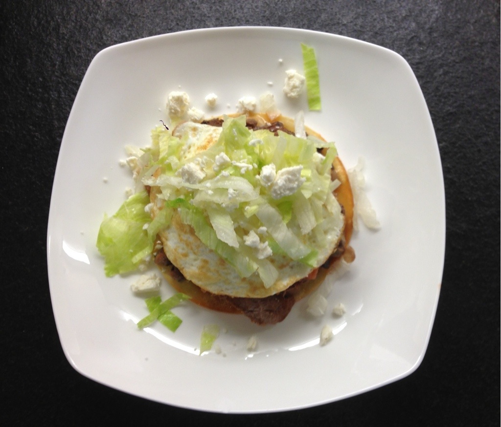 Finally, fry up an egg on medium to high heat. Season with salt and pepper. Cook over easy and place on top of your salsa.