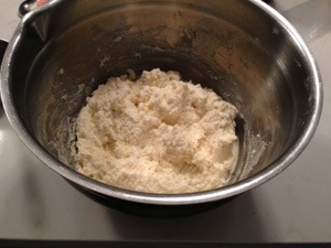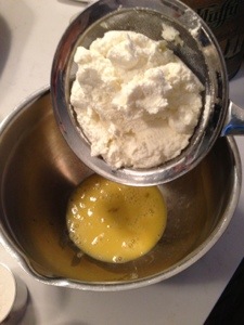 Place ricotta in a strainer set over medium bowl. Chill in the fridge until the ricotta has texture of wet clay, about 1 hour.