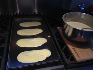 The batter should be on the thin side and smooth. Now here comes the tricky part… making the manicotti.