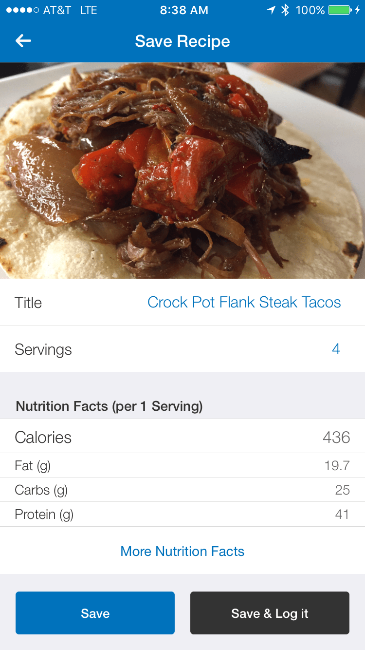 If you divide by 4 servings and use 2 corn tacos per serving you can see below this is a very healthy dinner option.