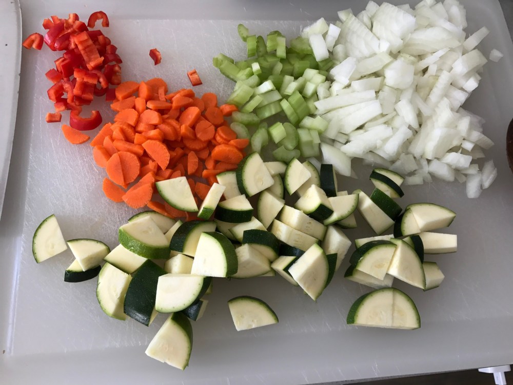 Then add the carrots, celery and peppers. Stir and let cook for another 2 minutes.