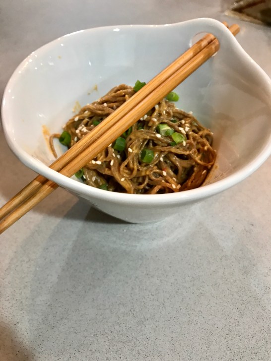 This particular night I was craving cold sesame noodles. I had been disappointed after ordering them a few times recently. I decided to make a version of them for dinner with chicken breast and eat it warm. You will need…
