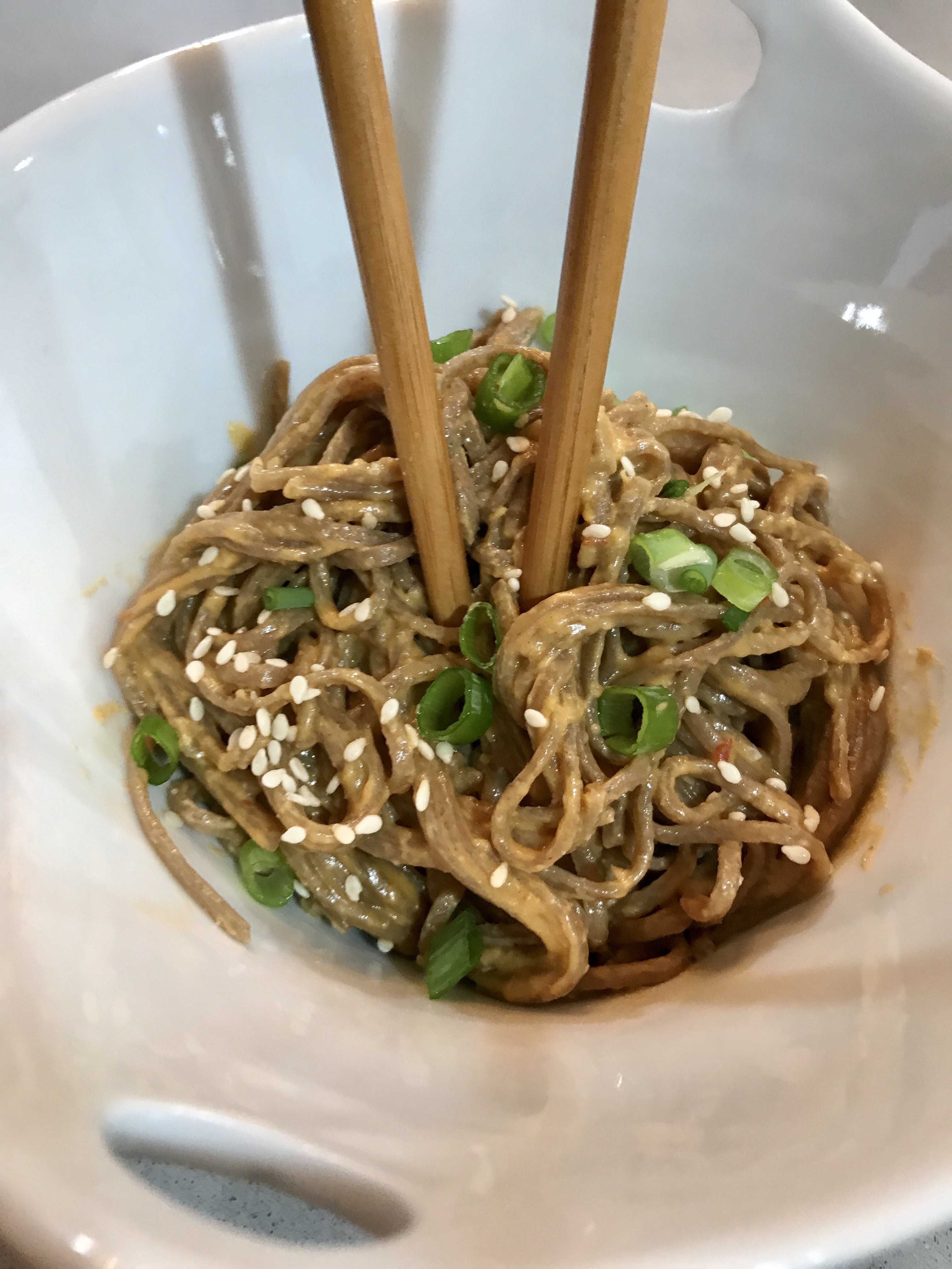You know what sucks? When you make the decision to calorie splurge because you’re craving (fill in the blank) and you open up that delivery to-go container, take your first bite, and then get immediately disappointed. This happens to me a lot. When I’m craving something that’s not too good for me, I want it to be WORTH IT! So in an effort to make sure I enjoy my calorie ridden meals I sometimes make them myself. (See some of my comfort food recipes here). This recipe could be a lot worse in the not so good for you department but using the soba noodles and not frying the chicken in a sugar sauce really makes this meal pretty good for you. And it’s packed with protein!