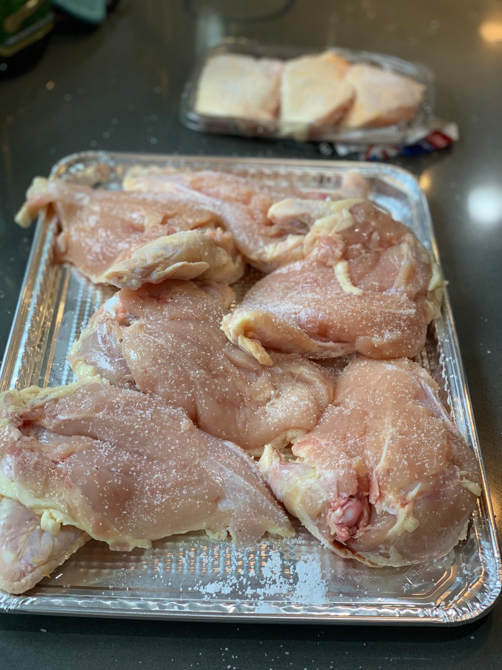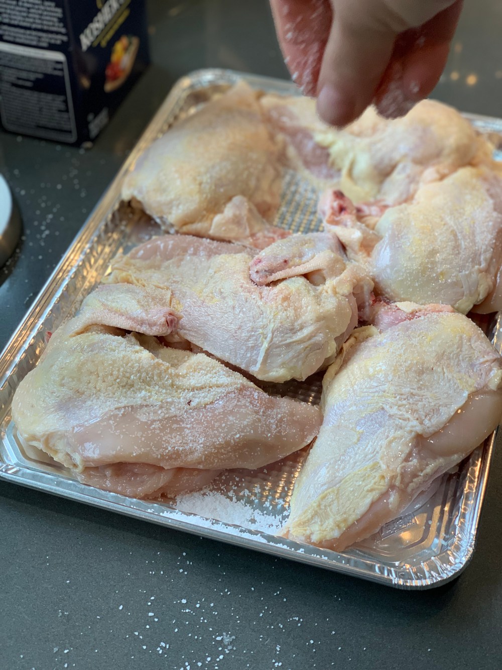 • 6 french cut chicken breasts, bone in and skin on (have the butcher do it- it’s easier that way!)